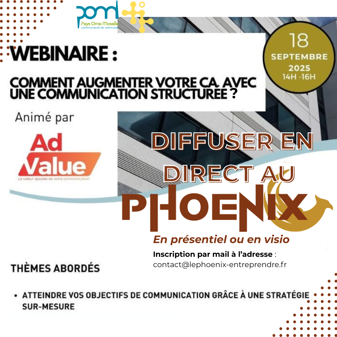 📩 Webinaire gratuit – Inscription obligatoire : contact@lephoenix-entreprendre.fr (un lien Doodle vous sera transmis pour accéder au webinaire)